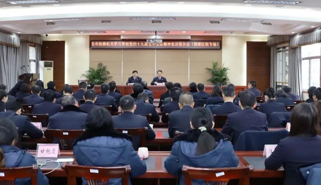 12月15日,市检察院宣讲团成员、綦江区检察院党组书记、检察长钟晓云在铜梁区检察院开展专题党的十九届五中全会精神专题宣讲。