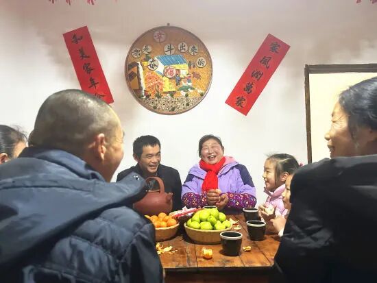 “今年过年,我觉得最幸福的是一家人健健康康,团团圆圆。2023年,我们一家人要齐心协力,把家里的农家乐办好,靠自己的双手勤劳致富!”户主杨顺义一家人围炉煮茶,话家风,聊家训,向到家里做客的亲朋好友分享自家幸福美满生活的家庭故事。
