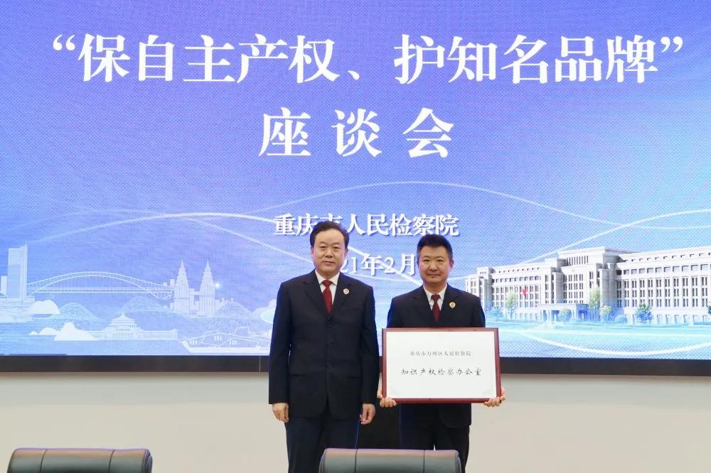 2月26日,市检察院知识产权检察办公室正式揭牌。全市检察机关承担知识产权检察职能集中统一履行试点的其余6个检察院知识产权检察办公室,以及11家知识产权保护联系点企业也同日集中授牌。这标志着知识产权检察职能集中统一履行试点工作正式启动,也拉开了重庆检察机关“保自主产权、护知名品牌”专项行动的序幕。