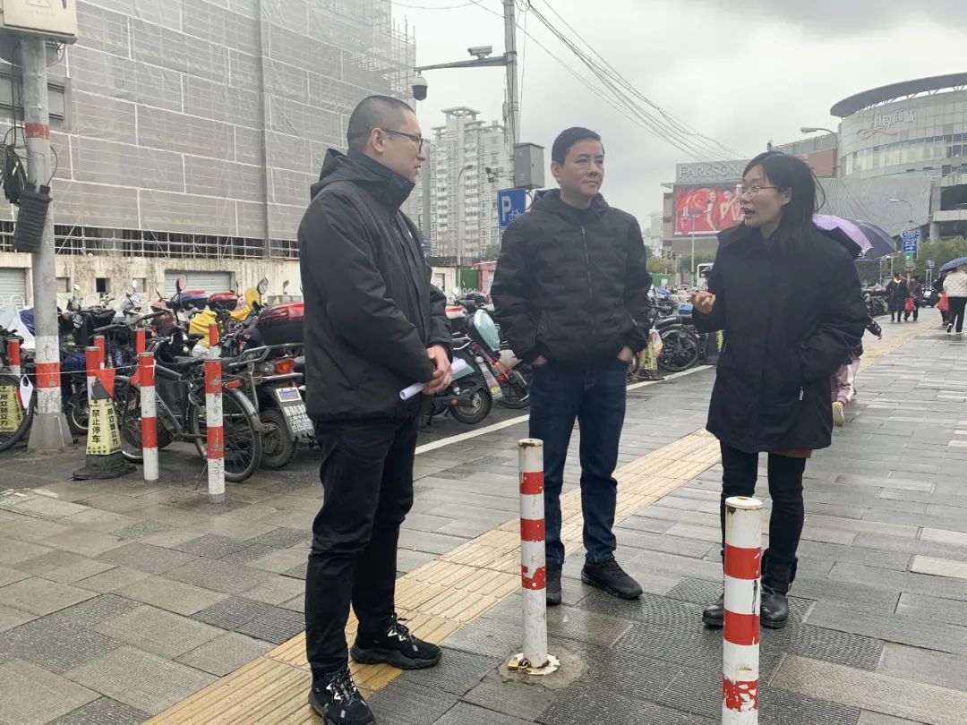 9月25日,闵行区检察院再次邀请上述两名人民监督员参与监督办案活动,与相关职能部门一同走访现场,实地了解盲道被侵占现状。承办检察官、职能部门工作人员分别立足各自职能说明履职难点,人民监督员结合自身专业知识和工作背景,提出有针对性的意见建议。
