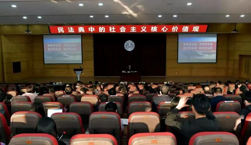 签约仪式后,贺恒扬在该校民主湖报告厅为重庆大学师生作题为“民法典中的社会主义核心价值观” 专题报告,重庆大学党委书记舒立春主持报告会。