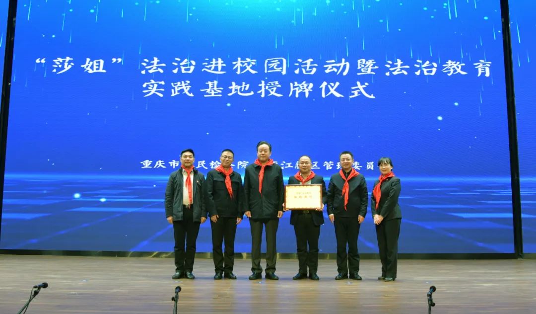 为加大普法力度,弘扬法治精神,进一步深化检察机关法治进校园工作,护航未成年人健康成长,日前,全市首个“莎姐”法治教育实践基地在两江新区星湖学校正式成立。市检察院党组书记、检察长贺恒扬向星湖学校授牌,并向学生代表赠送普法书籍。