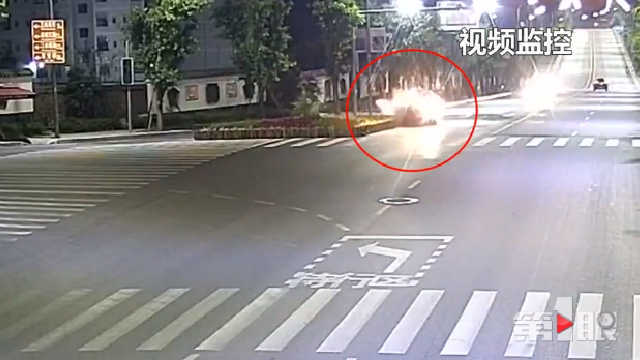 民警调取了该路段的监控视频:当晚22点48分,一辆白色小轿车从玉桥二桥开往白公祠方向。行驶途中,车辆撞上右侧花坛,因巨大的撞击力,车辆腾空而起,向前滑行五十多米后才停了下来。