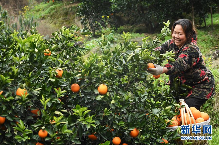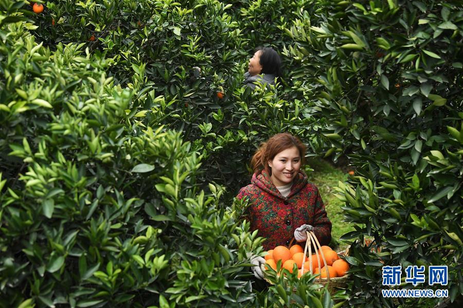 2月13日,奉节县白帝镇黄连村村民在果园里采摘脐橙。 重庆市奉节县地处长江三峡库区腹心,适宜的气候、土壤、光照、水源等自然条件,为优质脐橙的生长提供了良好环境。近年来,奉节县围绕“农民增收、农业增效、农村增绿”的目标,对脐橙产业进行“精准发展、精细管护、精深加工、精品营销”,不断提升产业效益。截至2018年底,全县脐橙种植面积33万余亩,年产量达30余万吨,成为脱贫增收的支柱产业。 新华社记者王全超摄