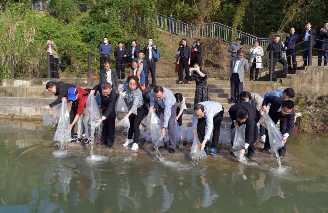 会后,与会人员赶赴位于重庆合川的重庆市检察机关渔业生态修复司法保护示范基地,观摩了增殖放流活动。