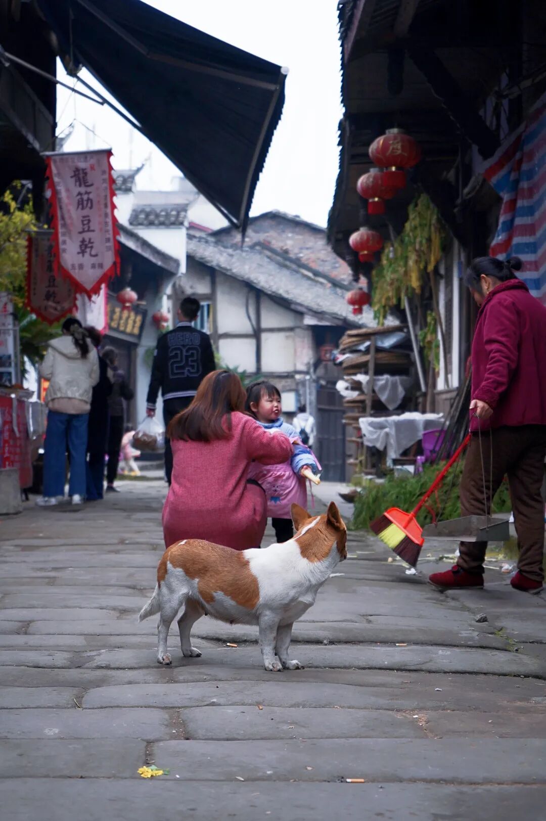 走在青石板的街道上,自来熟的大灰狗会求摸摸,小橘猫懒散地照看着店铺,嬢嬢正在专心纳鞋,一个老人跨着收音机溜达,街头巷尾处传来孩子们的嬉笑声。