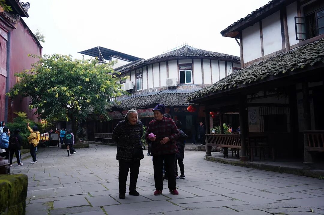 走累了,就坐在廊下或凉亭里歇脚,重庆嬢嬢们的热情也感染着游客,大家一起摆起了龙门阵, 一时竟分不清谁才是游客 。
